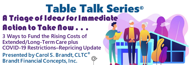Meet our guest speaker, Carol Brandt, CLTC® - President and Founder of Brandt Financial Concepts, Inc. - a local and independent firm with a rich history. Carol is certified in long- term care and a valued resource to our community. Having expertise with funding ideas for extended care, she has a passion for helping professionals and everyday people plan well to age well and hopefully, avoid going broke.